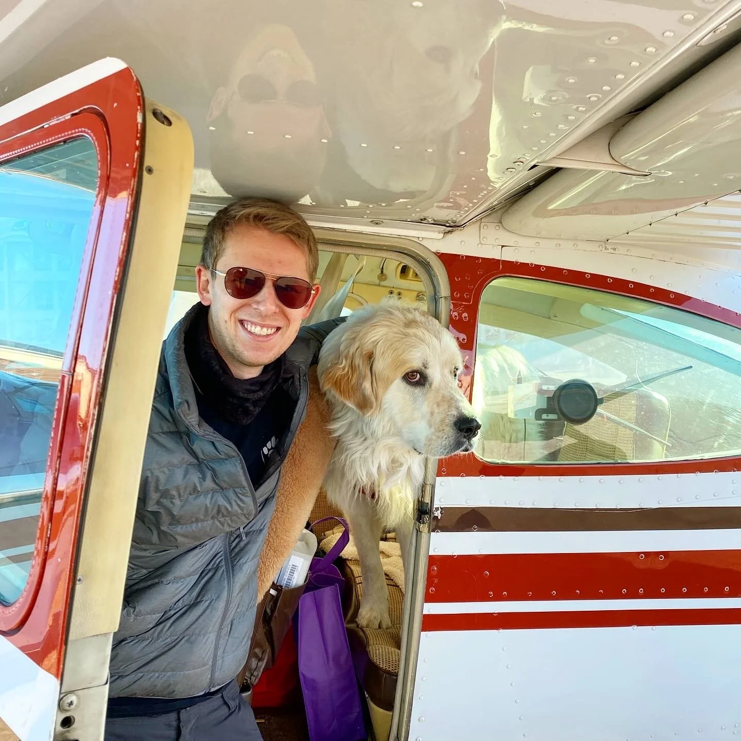 David A. (left) and Zeus (right) on a Pilots and Paws mission